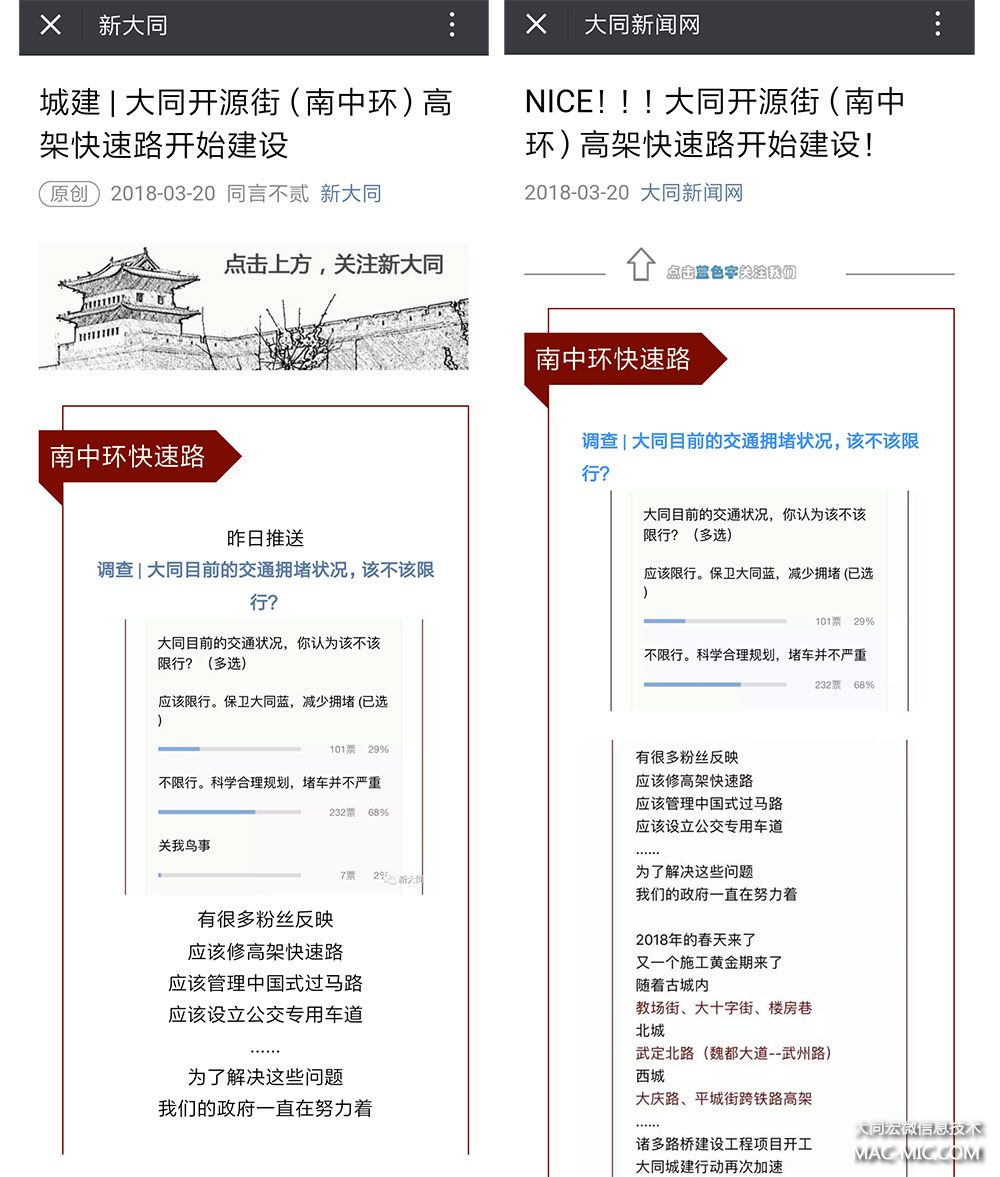 3月20日,《新大同》微信公眾平臺(tái)原創(chuàng)《城建 | 大同開源街(南中環(huán))高架快速路開始建設(shè)》一文被被大同知名官方媒體善意轉(zhuǎn)載(不加引號(hào),筆者認(rèn)為真善意也),雖說(shuō)把圖片水印一張一張抹去裁剪了,雖說(shuō)有些內(nèi)容也被屏蔽了,但最起碼,來(lái)源還標(biāo)注了“新大同”,所以我相信他們小編也是熱愛大同的,愛大同的人那必須都是我們的戰(zhàn)友。信息時(shí)代網(wǎng)絡(luò)資源共享無(wú)可厚非,何況這不是正說(shuō)明我們做的棒棒噠?嫡出與私生子,流淌的不還都是咱的血脈?cool