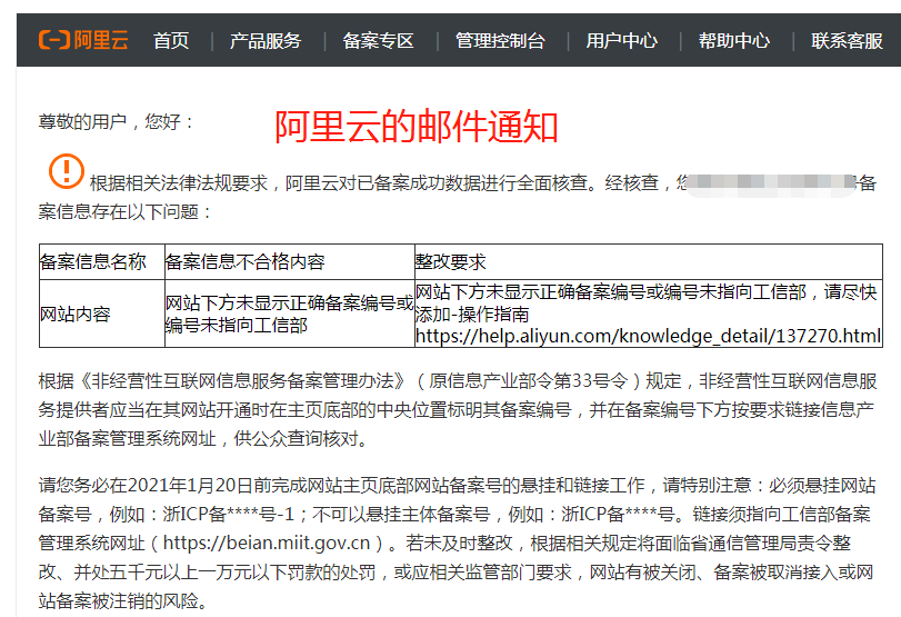 近期,很多用戶收到有關(guān)網(wǎng)站備案核查短信或郵件,提示用戶在網(wǎng)站下方未顯示正確備案編號(hào)或編號(hào)鏈接未指向工信部: