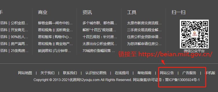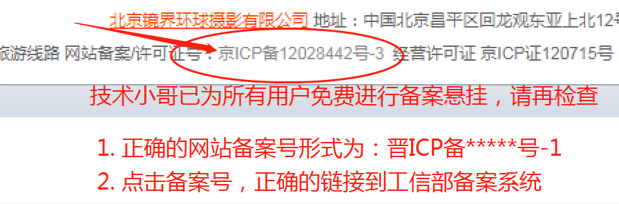 截至目前,宏微技術(shù)小哥已經(jīng)加班加點(diǎn),為所有用戶免費(fèi)進(jìn)行了網(wǎng)站備案號(hào)懸掛和鏈接指向修改。因修改涉及客戶數(shù)量多,修改范圍廣(此前只要求懸掛主體單位備案號(hào)如晉ICP備****號(hào)),各家客戶采用的網(wǎng)站系統(tǒng)和數(shù)據(jù)形式不同,雖反復(fù)檢查,仍唯恐遺漏,所以請(qǐng)廣大網(wǎng)站備案用戶務(wù)必在電腦端打開網(wǎng)站,查看首頁底部的網(wǎng)站備案號(hào)是否為“晉ICP備****號(hào)-1”形式,并測(cè)試點(diǎn)擊備案號(hào)可以打開工信部備案系統(tǒng)https://beian.miit.gov.cn,如出現(xiàn)遺漏或鏈接無法打開,請(qǐng)速速與我們聯(lián)系,避免被處罰或取消接入等風(fēng)險(xiǎn)。